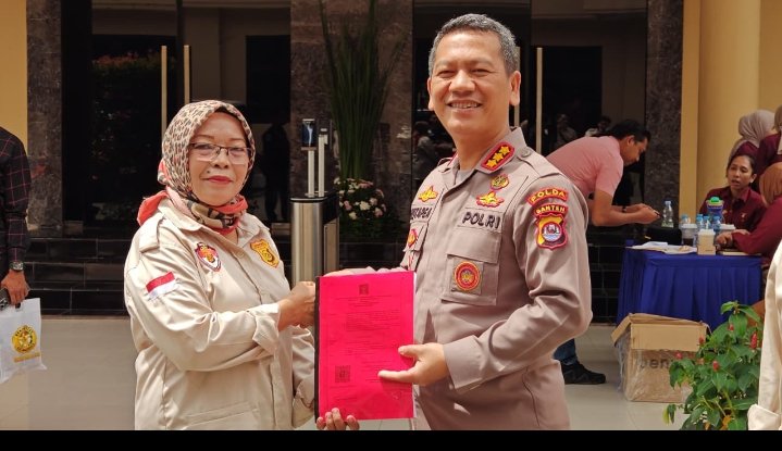 Dalam kesempatan yang sama, Ketua PW FRN DPW Banten Roslina, didampingi Ketua DPC Cilegon Icha S, menyerahkan satu bundel dokumen lengkap Anggaran Dasar dan Anggaran Rumah Tangga (AD/ART) PW FRN kepada Kabidhumas Polda Banten Kombes Pol Maruli Achiles Hutapea.