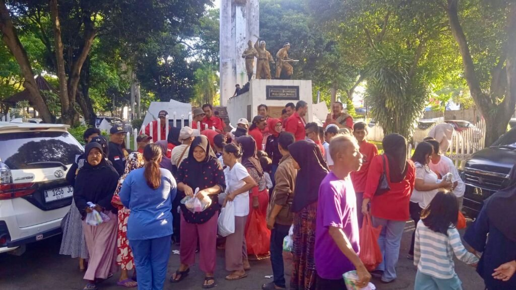SERANG KOTA.GLOBALWIJAYA.COM.- PDI Perjuangan Kecamatan Serang menggelar kegiatan sosial berbagi takjil kepada masyarakat dalam rangka menyemarakkan bulan suci Ramadan. Kegiatan ini dilaksanakan pada Minggu, 15 Maret 2026, bertempat di Alun-Alun Kota Serang, Kecamatan Serang.