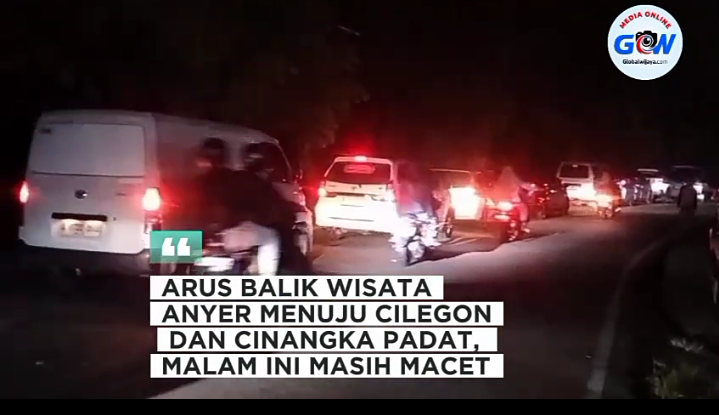 Serang, globalwijaya.com – Arus lalu lintas dari kawasan wisata Anyer menuju arah Cilegon dan Cinangka pada malam ini terpantau masih mengalami kepadatan. Lonjakan kendaraan yang didominasi wisatawan yang melakukan perjalanan balik menyebabkan antrean panjang di sejumlah titik.