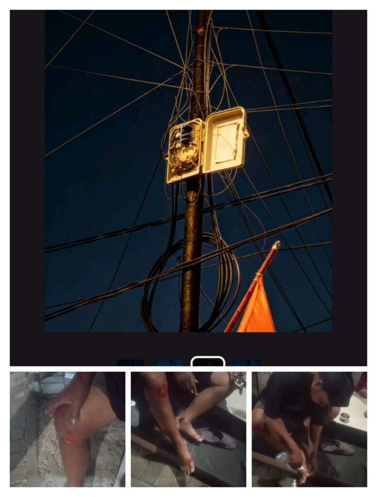 Serang.GlobalWijaya.com 10-4-2026. – Kabel fiber optik (wifi) terjuntai didaerah Cimeunti ,Kecamatan Pabuaran Kabupaten serang hampir merenggut pengguna jalan.