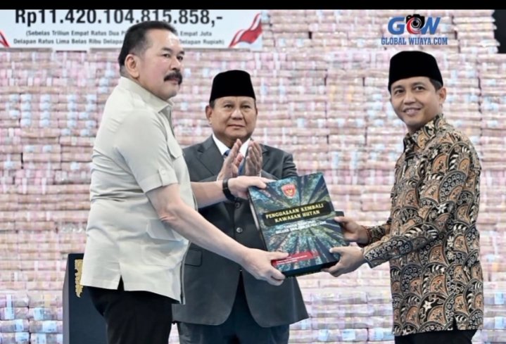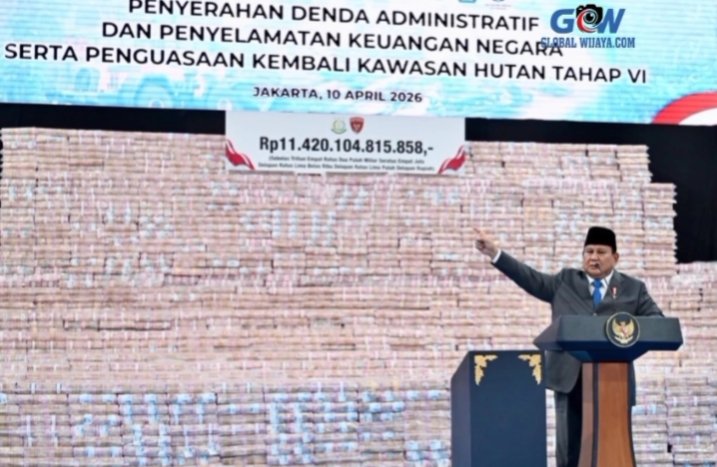 Jakarta,Globalwijaya.com– Presiden Prabowo Subianto menyaksikan langsung prosesi penyerahan denda administratif, penyelamatan keuangan negara, serta penguasaan kembali kawasan hutan tahap VI di Kompleks Kejaksaan Agung RI, Jakarta, pada Jumat (10/04/2026). Langkah ini merupakan komitmen nyata pemerintah dalam memperkuat tata kelola sumber daya alam dan memastikan setiap rupiah aset negara kembali ke kas rakyat.